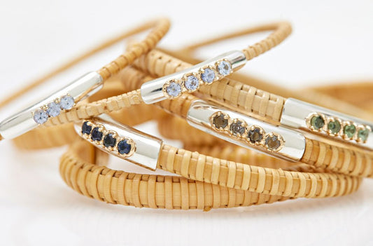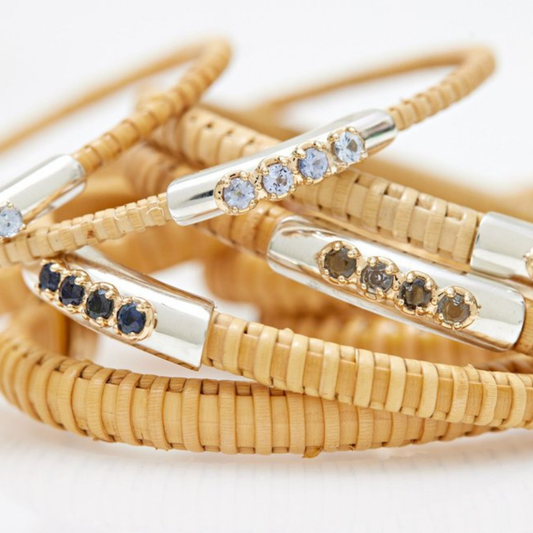 Light Blue Sapphire Thin Nantucket Basket Bangle (Made to Order 4-6 Weeks)
