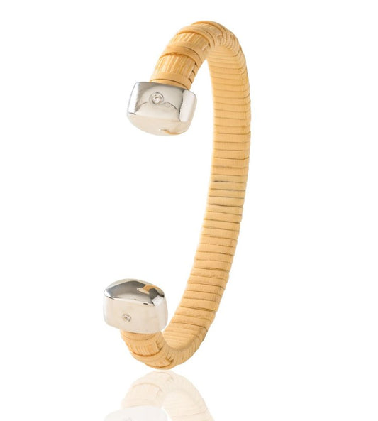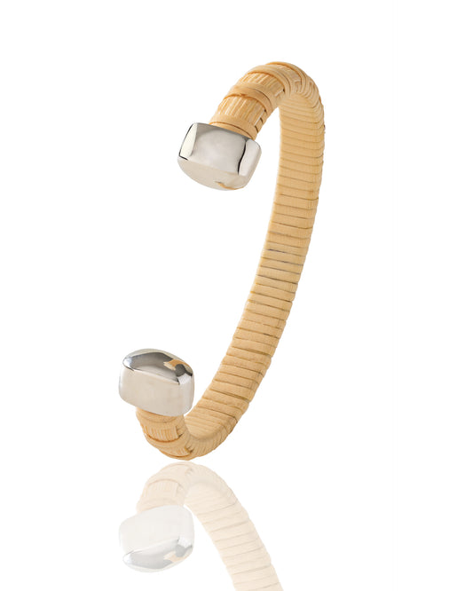 Silver Seas Nantucket Lightship Basket Cuff with Sterling Silver Caps (Made to Order 2 Weeks)