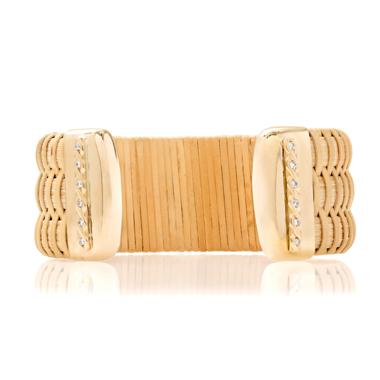 Golden Hour Nantucket Lightship Basket Cuff with Gold & Diamonds (Made to Order 2-4 Weeks)