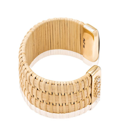 pattern, traditionally made from natural cane rattan, transformed into an elegant cuff bracelet. Finished with sterling silver or gold end caps, these bracelets blend classic craftsmanship with refined coastal